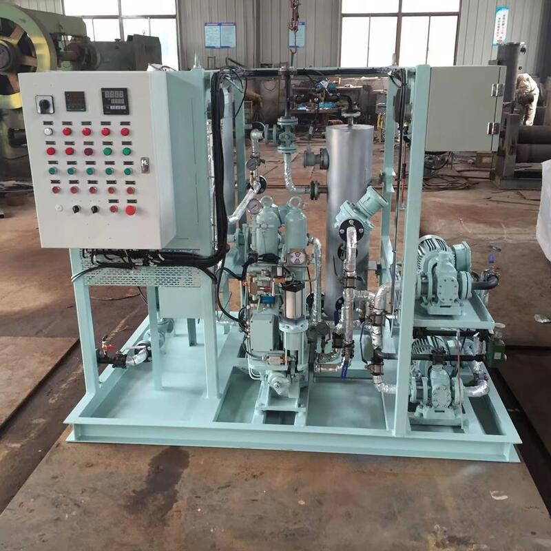 The fuel that has been heated from the heavy oil daily oil tank to 70~95℃, passes through the barrel coarse filter, flow meter, fuel supply pump, and then enters the oil mixing cylinder (with automatic bleed system), and then is injected into the heater, Fully automatic electric heater, automatic backwashing filter, and then supply to the diesel engine through the viscosity sensor. The electric heater is used as supplementary heating when the pressure or temperature of the steam or thermal oil in the system is insufficient, and it can also be used as an advance pre-circulation pre-circulation before the main engine starts. Heat; when the oil temperature of the daily-use cabinet reaches a certain value, it can also be used as the main heating. But it is generally not recommended to be used as the main heating. The viscosity sensor converts the actual viscosity signal of the heated fuel into an electrical signal, which is sent to the viscosity controller through signal transmission and processing. The viscosity controller compares the actual input signal with the set signal and then outputs the control signal to the electric execution Mechanism-electric control valve, adjust the opening of the actuator control valve (intelligent continuous control), thereby increasing or decreasing the heating heat of the fuel, keeping the actual viscosity within the set viscosity range, that is, To control the viscosity of the heavy oil at the ideal atomization temperature, the fuel supplied to the diesel engine can be ideally atomized, improve the output power of the diesel engine, and reduce carbon deposits and wear. And wear.